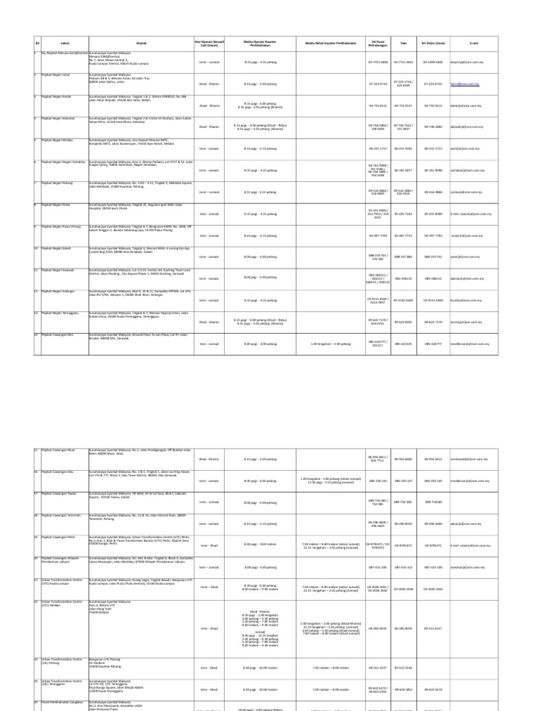 1 Senarai Lokasi Pejabat Negeri Cawangan Utc Kaunter Perkhidmatan Dan Kiosk Ssm Pdf